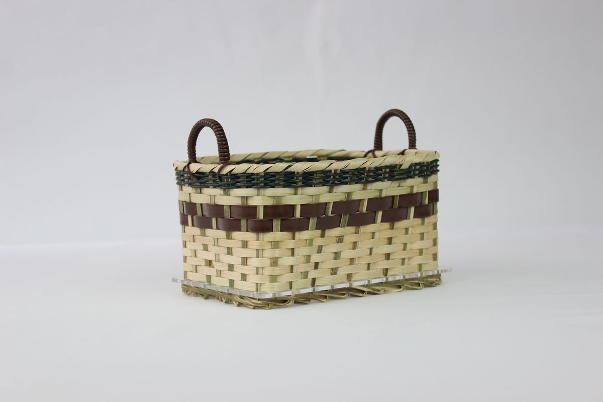 Canasta rectangular con asas tejida en fibra natural con aplique tejido en plástico recuperado y base de acrílico transparente, elaboradas por artesanos de tejeduría de Duitama, Boyacá. Ideales para decorar los espacios de tu hogar.