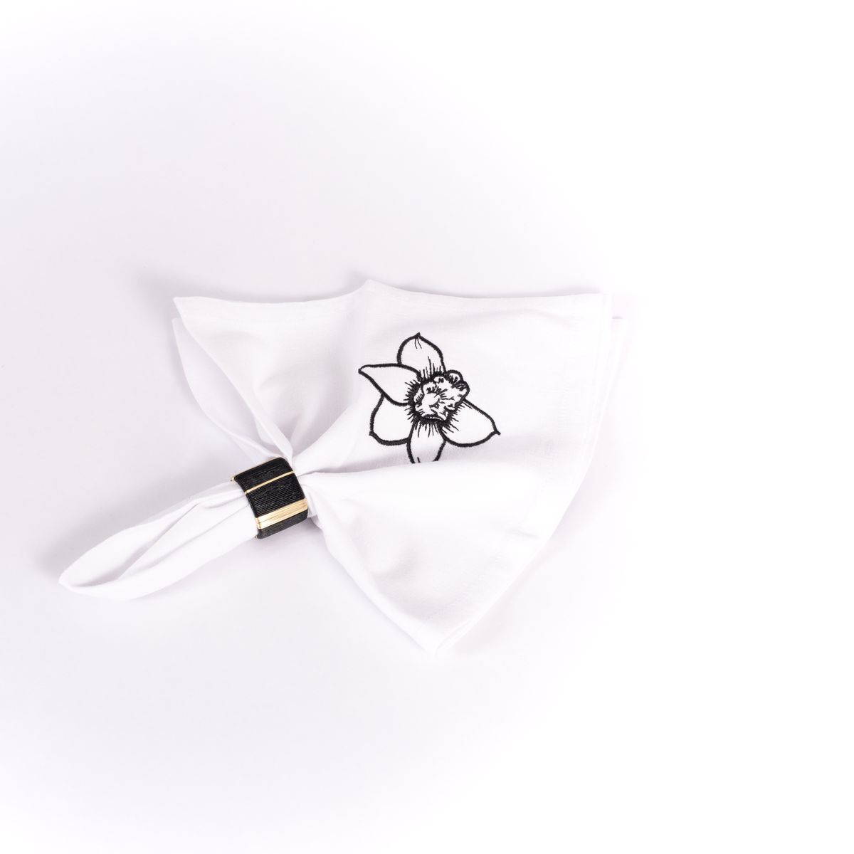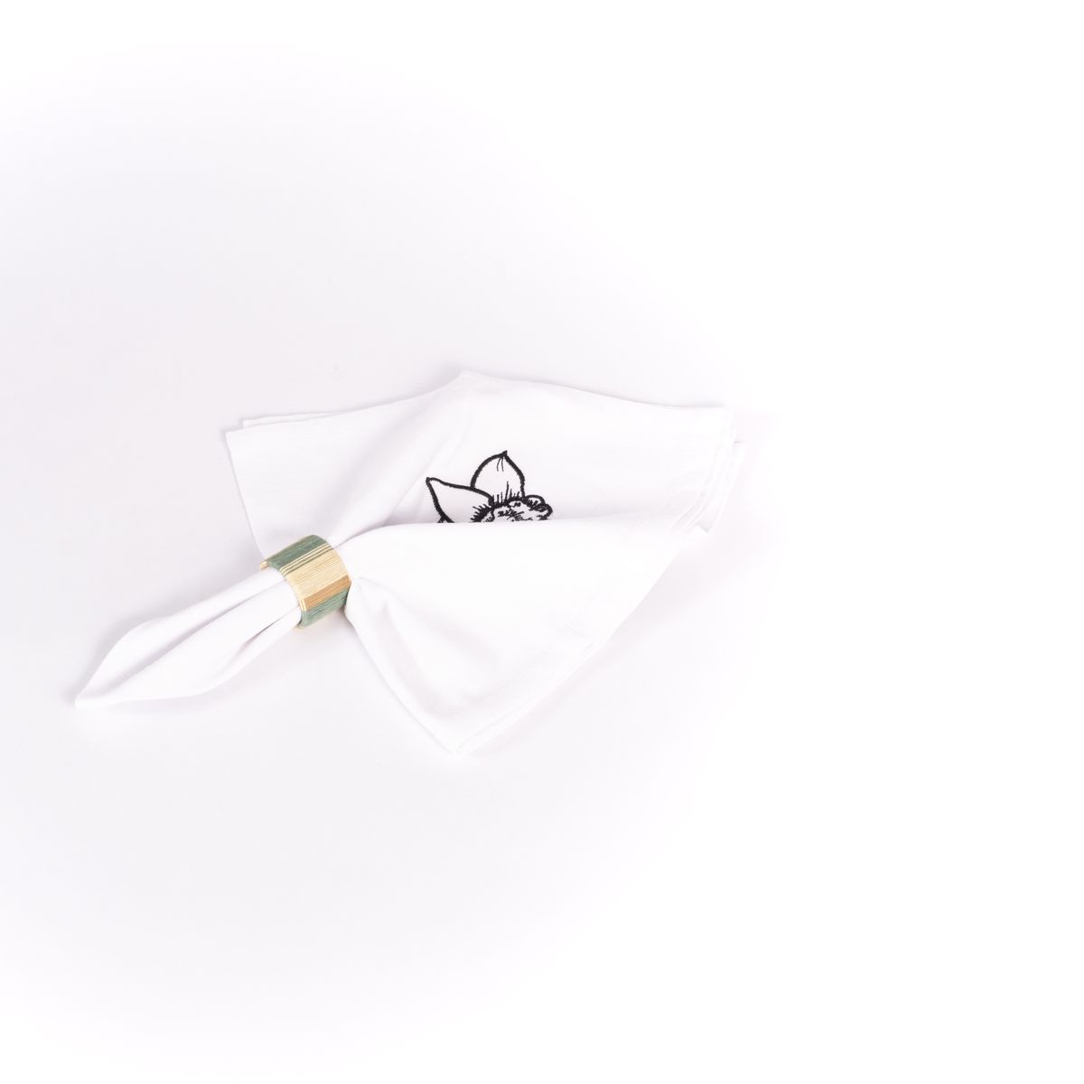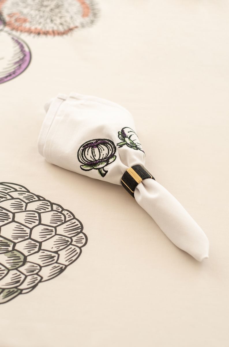 Estas servilletas de tela tienen bordados de estrella de mar, mangostino y flor de papa, combinando la elegancia natural con la practicidad diaria. Cada detalle refleja la frescura del océano y la tierra, agregando un toque distintivo a cualquier mesa.