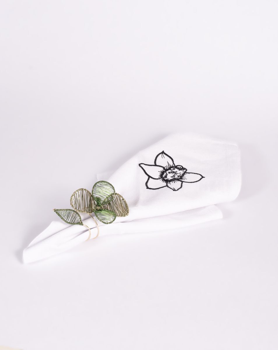 Servilleteros elaborados en alambre de plata están inspirados en elementos distintivos de las regiones caribe, amazónica y andina, como la estrella de mar, la parte superior del mangostino y la flor de la papa.